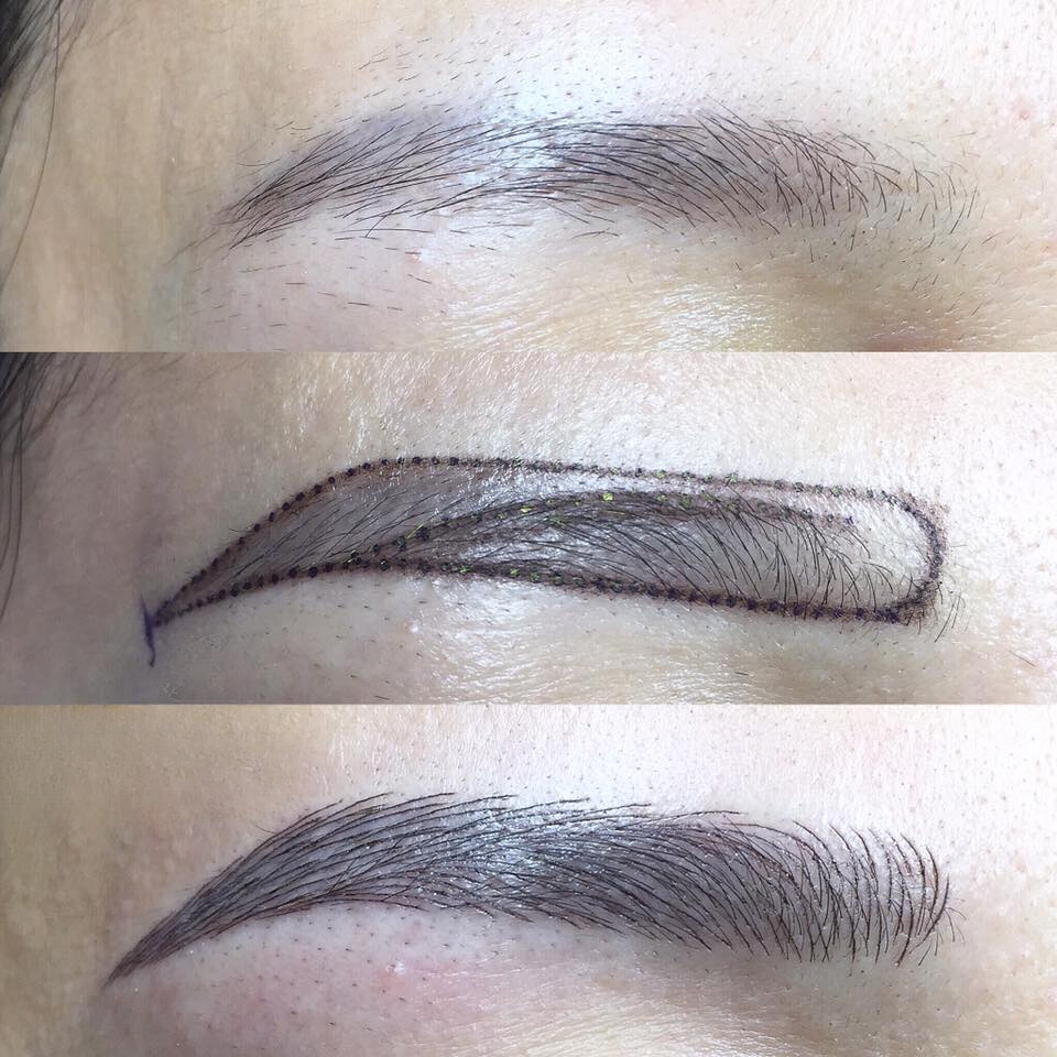 Kỹ thuật này thường được thực hiện bằng cách sử dụng các công cụ chuyên dụng như dao điêu khắc hoặc máy phun xăm có đầu kim mảnh, tạo ra các đường nét sắc sảo, tự nhiên, phù hợp với dáng mặt và thẩm mỹ của từng khách hàng.