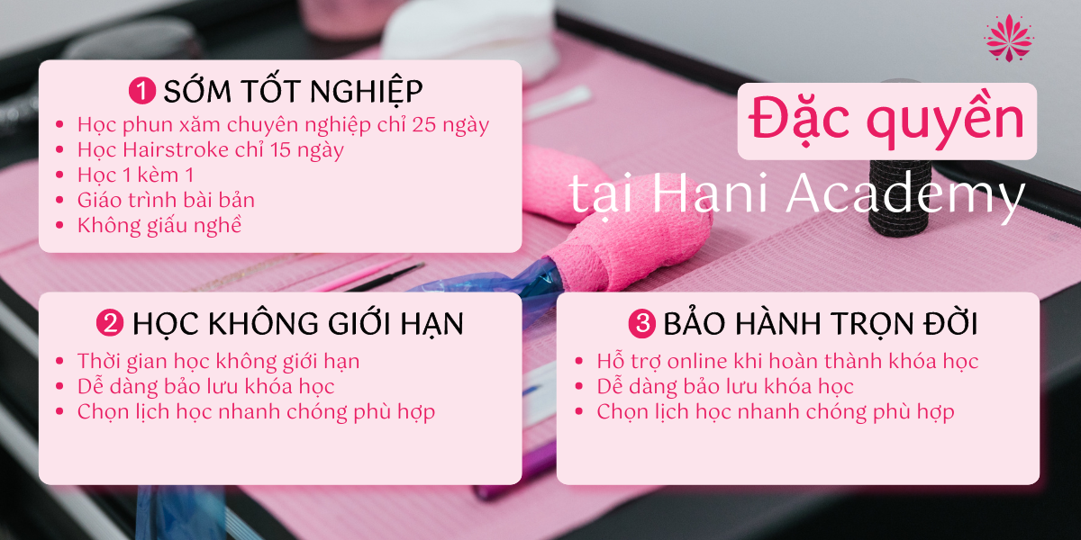 Khóa học phun xăm lông mày tại HaniBeauty không chỉ giúp bạn nắm vững kỹ thuật phun xăm mà còn trang bị những kiến thức bổ ích để phát triển sự nghiệp trong lĩnh vực làm đẹp. Hãy đăng ký ngay hôm nay để trở thành một phần của cộng đồng HaniBeauty, nơi mà vẻ đẹp và sự nghiệp cùng tỏa sáng!