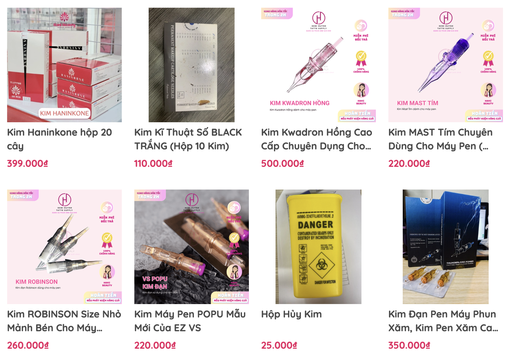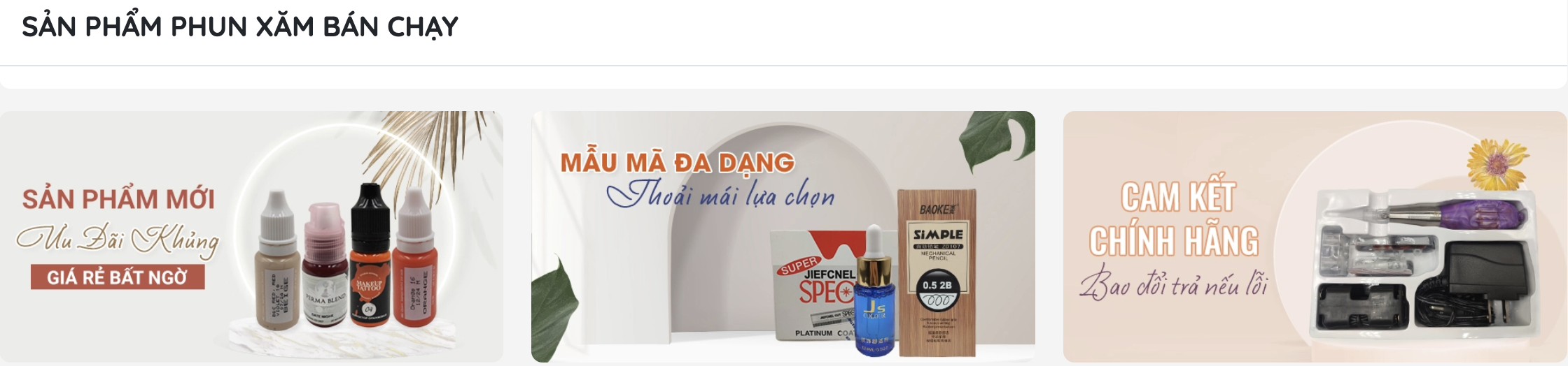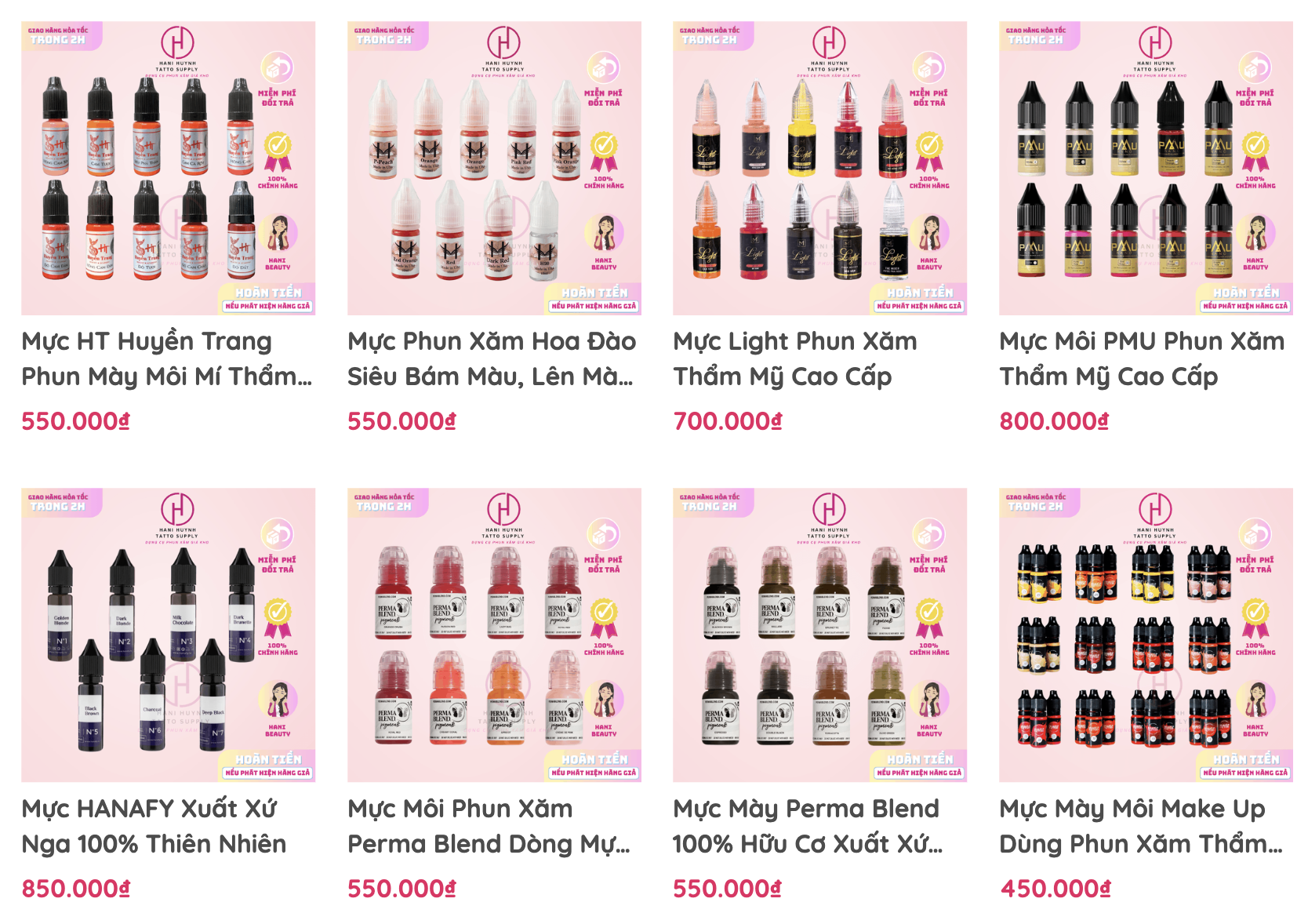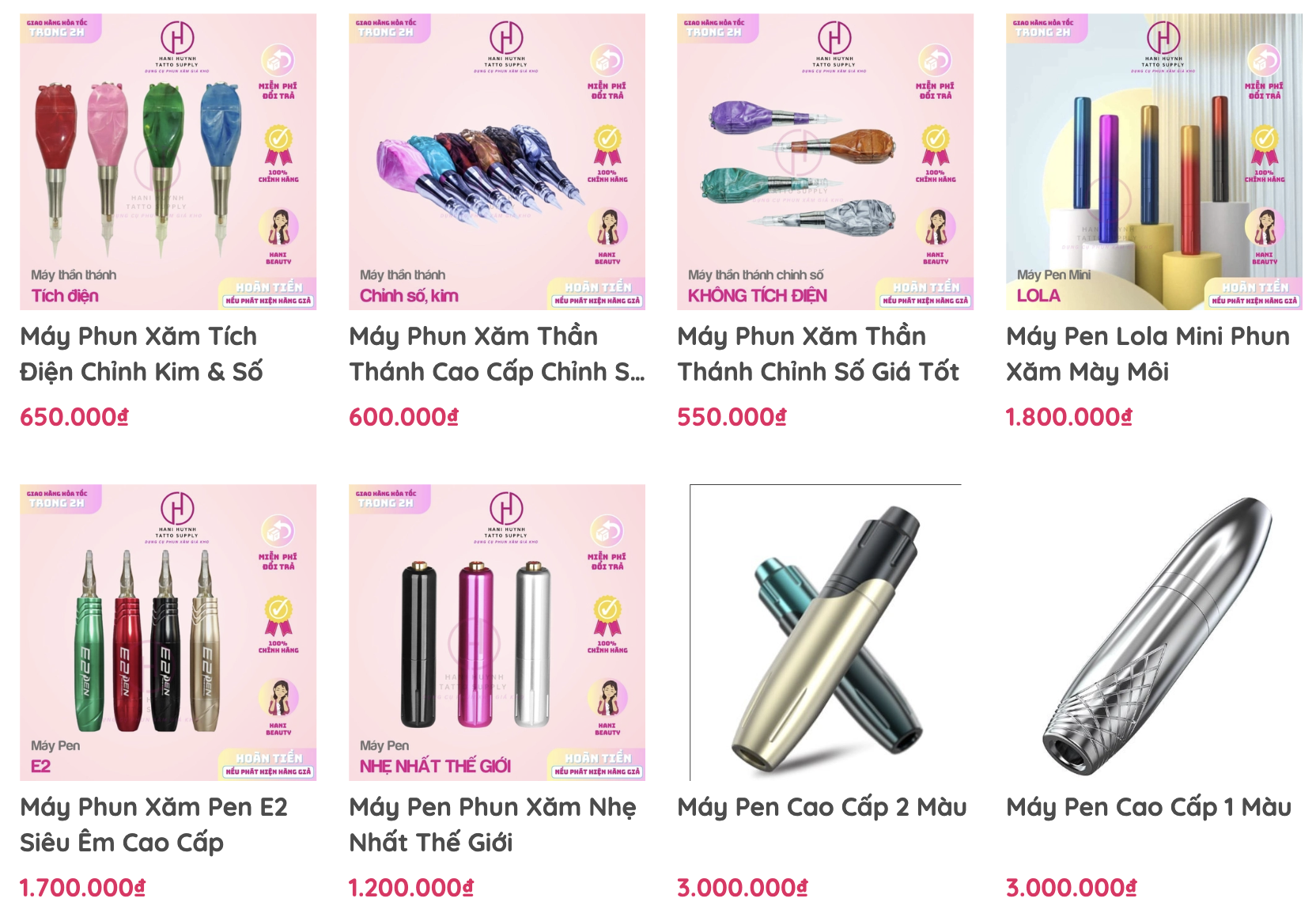 Hani Beauty cung cấp đa dạng các loại dụng cụ phun xăm từ cơ bản đến chuyên nghiệp, phục vụ cho cả những người mới học và các chuyên gia phun xăm giàu kinh nghiệm. Một số sản phẩm nổi bật tại Hani Beauty bao gồm: