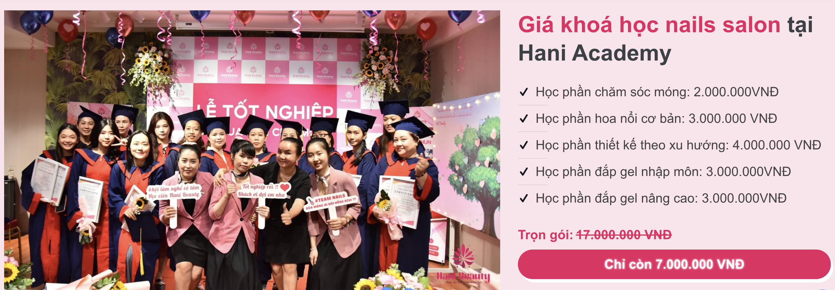 - Trong rất nhiều trung tâm đào tạo, Hani Beauty vẫn trở thành sự lựa chọn ưu tiên của nhiều người. Theo đó, địa chỉ này mang lại hàng loạt những lợi ích thiết thực. Điển hình như giá khóa học hợp lý, cơ sở vật chất khang trang, cam kết về chương trình giảng dạy đạt chuẩn.